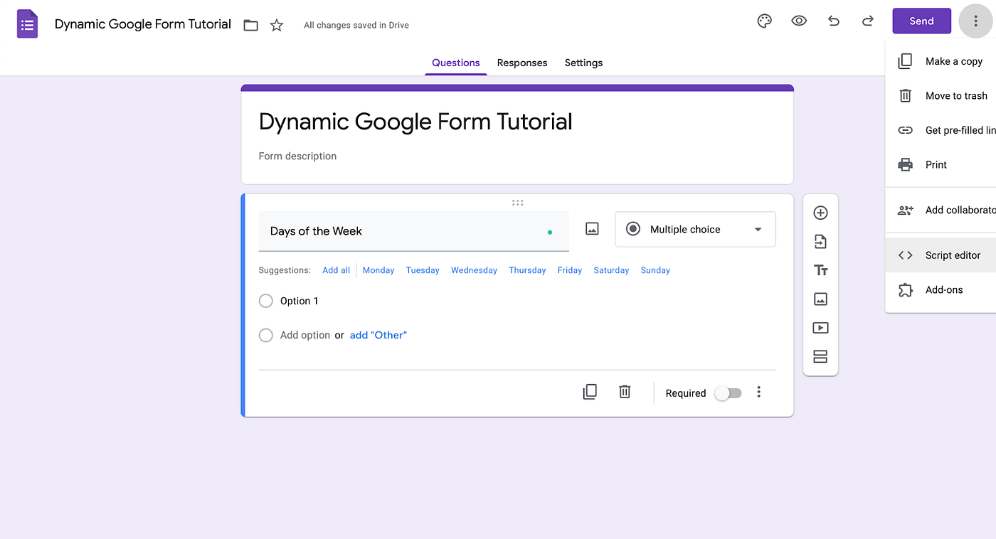 Want all of the answer options in a menu? If it don't have to use script for it, you can use the forms ui sections to achive this goal. Create the spreadsheet where your list will reside. Try powerful tips, tutorials, and templates. Open up the script editor